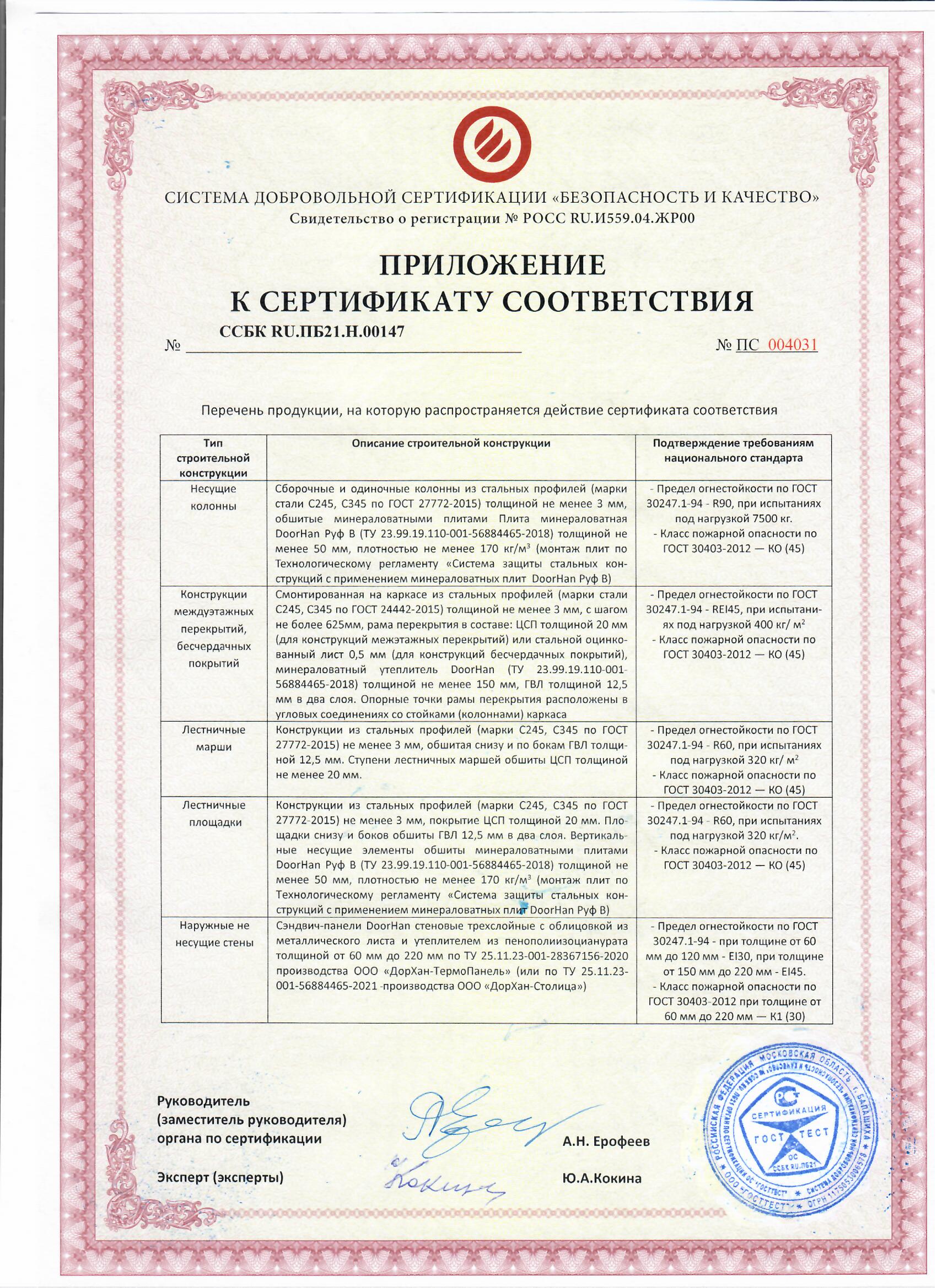 Группа горючести по ГОСТ 30244-94 Г1 (слабогорючие материалы) Для сэндвич-панелей c PIR-наполнителем