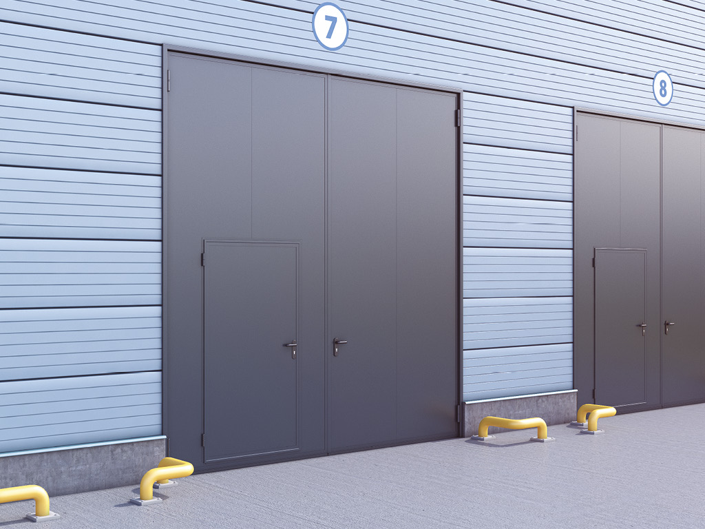 Промышленные распашные ворота в стальной раме с сендвич-панелью